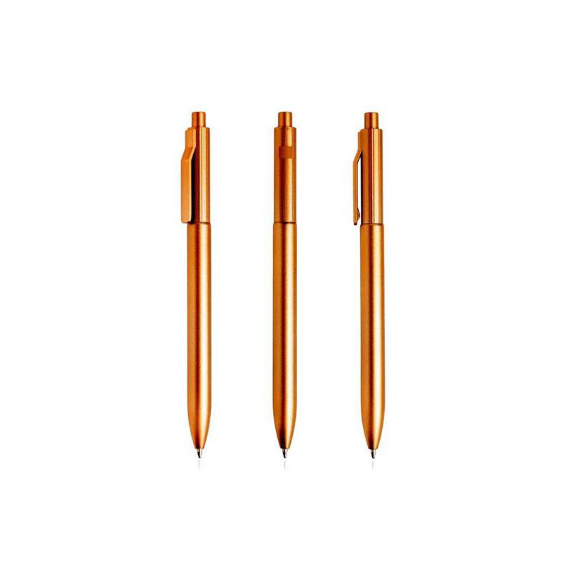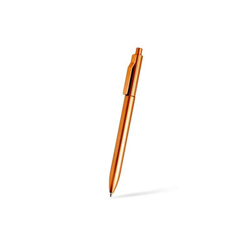 Esferográfica produzida em ABS reciclado, com um design funcional que reflete um compromisso com a sustentabilidade. A parte superior destaca-se por um padrão em relevo listrado, que ocupa cerca de um terço do comprimento da caneta e incorpora elegantemente o clip. Equipada com mecanismo de abertura por botão de pressão e tinta preta, é uma escolha prática e fiável para o uso diário. As cores metálicas conferem-lhe um toque sofisticado, tornando-a ideal tanto para contextos profissionais como para brindes de impacto.