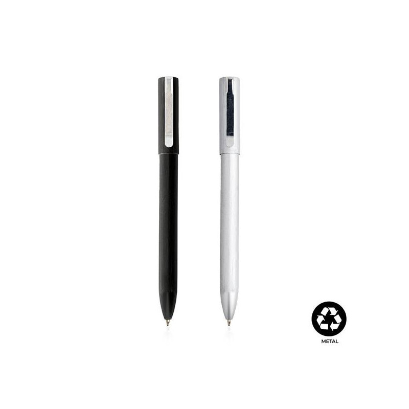 Esferográfica em alumínio reciclado. Produzida com alumínio reciclado proveniente de resíduos e produtos no final de sua vida útil, utilizando processos de fusão e reaproveitamento. Ao adquirir esta esferográfica, está a ajudar a reduzir as emissões de carbono e a diminuir o desperdício resultante da falta de reutilização.