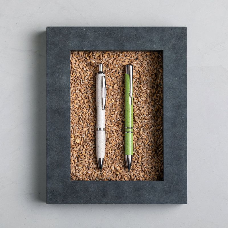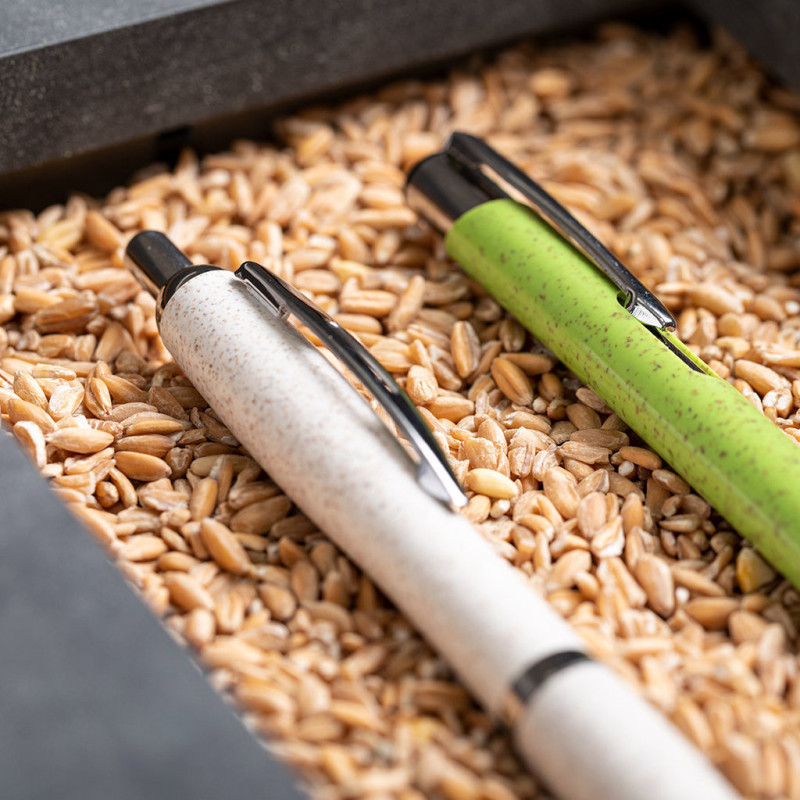 Caneta de bola da linha da natureza com corpo feito de palha de trigo, para incentivar o uso de matérias -primas naturais e reduzir as emissões contaminantes. Detalhes cromados e clipe de corte, mecanismo de flexão, com cartucho jumbo e tinta azul. Disponível em uma ampla gama de cores.