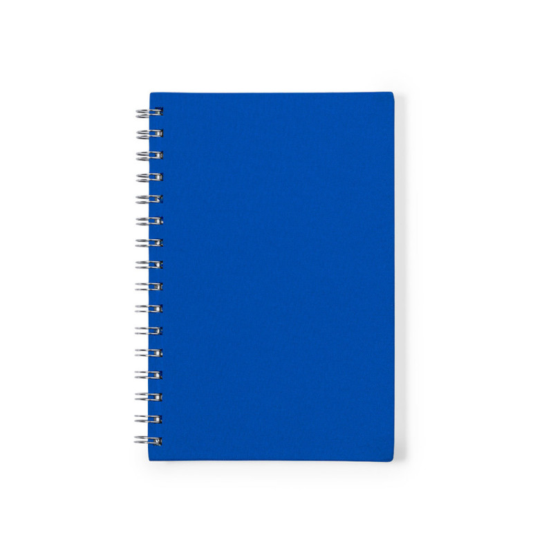 Bloco de notas A5 com capas duras em resistente material RPET 300D. Interior com 100 folhas pautadas e 100% recicladas microperfuradas. Inclui distintivo RPET na contracapa. Apresentado em bolsa individual reciclada.O material RPET é elaborado a partir de plástico reciclado, para assim fomentar a reutilização de residuos plásticos e ajudar na sustentabilidade do planeta.