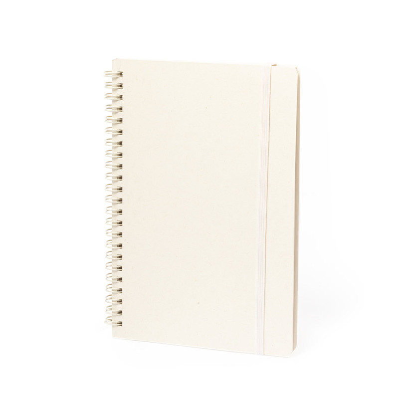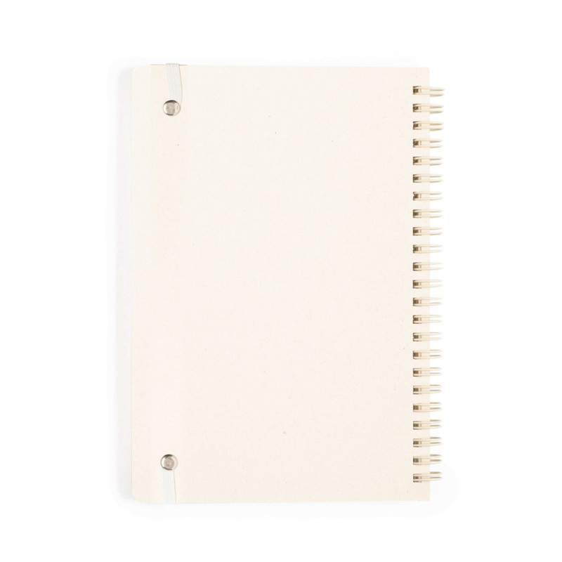 Caderno A5 de argolas duplas metálicas com capas duras fabricado a partir de caixas de leite recicladas. Interior com 80 folhas cor natural pautadas micro perfuradas e elástico de fecho em cor natural. Logotipo Recycled Milk Carton na contra capa e apresentada numa bolsa individual reciclada.As caixas de leite são na sua maioria feitas de cartão e alumínio. Durante o seu processo de reciclagem, são separados os distintos materiais da embalagem para sua reutilização e novo uso, contribuindo assim para o caminho infinito da economia circular. Este material caracteriza-se por um elevado grau de reciclabilidade, assim como pela sua leveza e resistência.