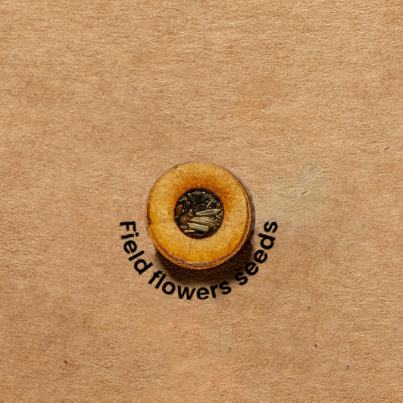 Pasta com sementes fabricada em cartão reciclado. Capa flexível com interior especial para guardar folhas de papel e banda elástica de fecho. Na capa contém uma cápsula com sementes silvestres.O cartão reciclado provém da reutilização de excedentes de fabrico e reciclagem de papel no final da sua vida útil, tornando-se uma tela ecológica e sustentável.