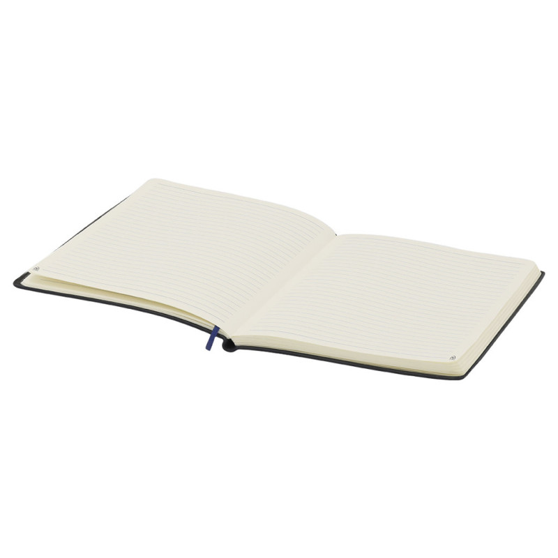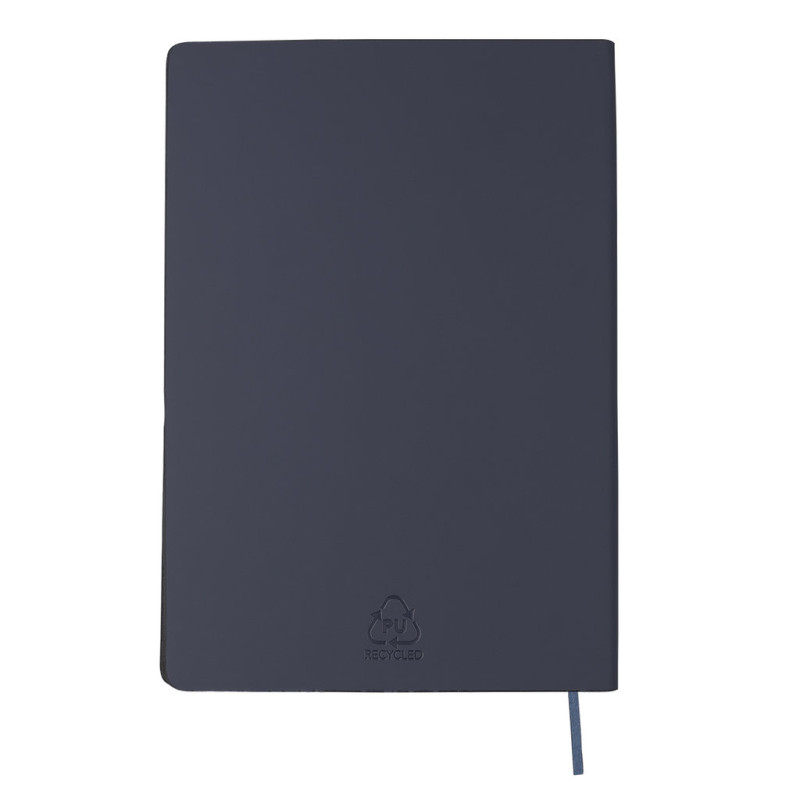 Bloco de notas com capa macia feita de couro PU reciclado. Interior com 80 folhas creme com layout de faixa única. Com marcador de página combinando e logotipo de couro PU reciclado.O couro PU reciclado destaca-se pela sua resistência e elasticidade. Este material reciclado e reciclável é uma opção sustentável que resgata as fibras descartadas nos processos de fabricação, minimizando assim o desperdício de material e contribuindo para reduzir o impacto ambiental, mantendo suas propriedades originais.
