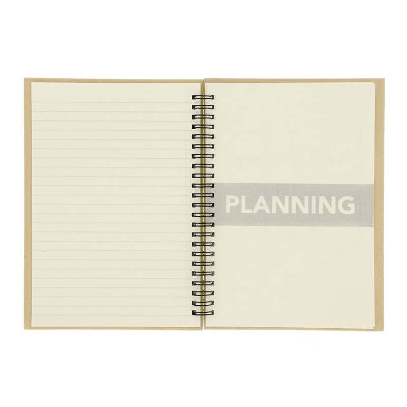 Caderno com planificador mensal incluído, com capas rígidas em cartão reciclado. Inclui 80 folhas cor creme com linhas e marca de corte fácil, 13 folhas de planificador mensal não datado, com vista de calendário mensal, e 2 folhas adicionais para notas com disposição pautada. Perfeito para planear o mês, tirar apontamentos e organizar o dia a dia. O cartão reciclado provém do reaproveitamento de excedentes de produção e da reciclagem de papel no fim da sua vida útil, transformando-se numa tela ecológica e sustentável.