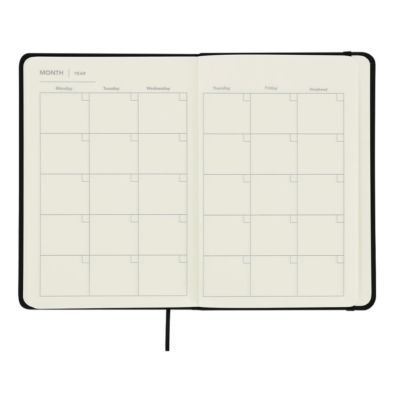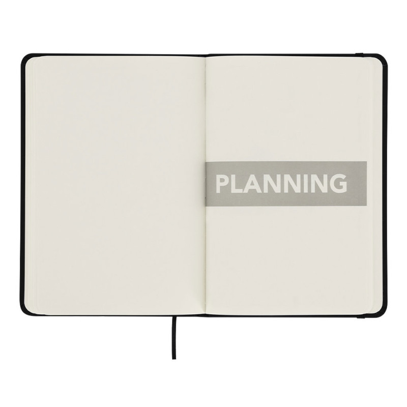 Bloco de notas com planificador mensal incluído. Fabricado em suave PU, com banda elástica a condizer. Inclui: 98 folhas cor creme, sem linhas 13 folhas de planificador mensal não datado, com vista de calendário mensal folhas adicionais para notas, com disposição pautada Perfeito para planear o mês, tirar apontamentos e organizar o dia a dia.