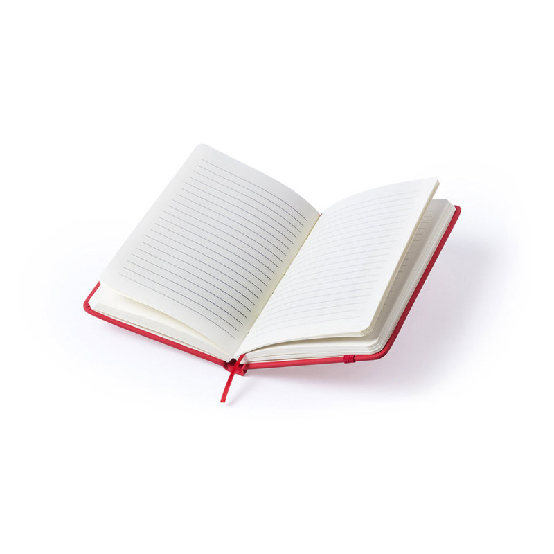 Bloco de notas com capas suaves ao toque, com acabamento em couro sintético e em cores casuais. Com 100 folhas de distribuição de banda única, fixação elástica e marcador de tecido correspondente.