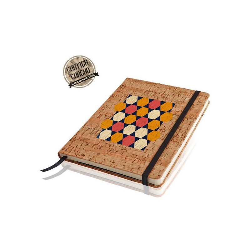 Bloco de notas A5, com capa em cortiça e bolsa. Um bloco com a elegância da cortiça portuguesa na capa, colmatado com detalhes de elástico e fitilho a preto. Com 180 páginas lisas de 70g, proveniente de florestas geridas de forma responsável, este bloco é um brinde clássico, mas na moda.