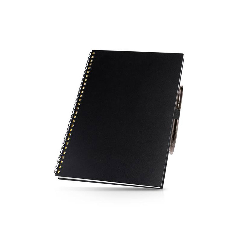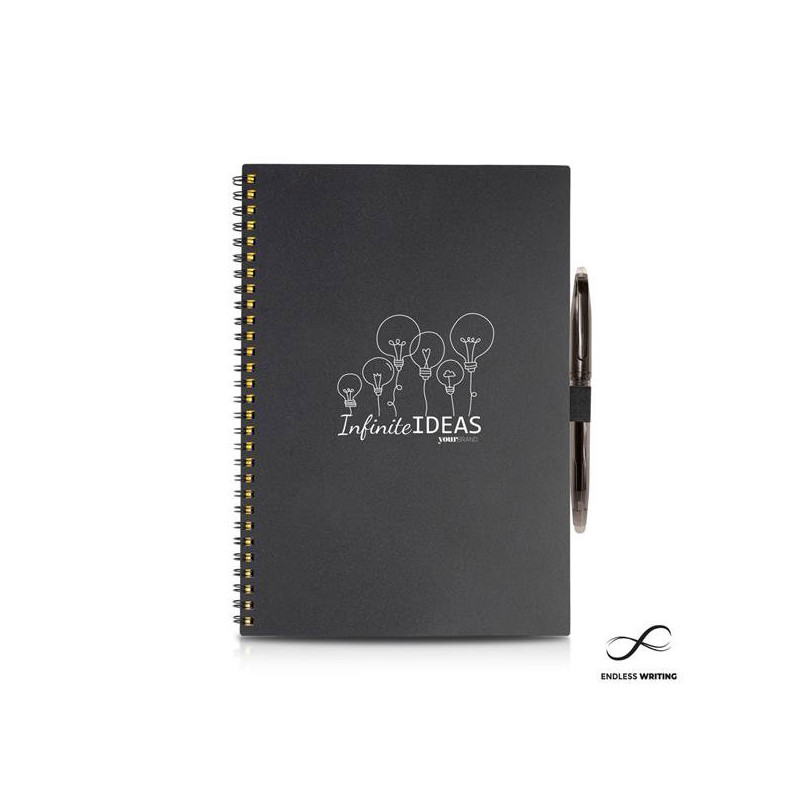 Bloco infinito A5 com esferográfica e pano de limpeza. Não gosta de comprar cadernos para fazer apenas apontamentos e rabiscos? Gosta de guardar os seus pensamentos e rascunhos, mas acha um desperdício de papel e dinheiro? A solução chegou! Com este bloco pode escrever, digitalizar e apagar, guardando todas as ideias no seu telemóvel e poupando o ambiente e a carteira. Com 20 folhas pautadas e 20 pontilhadas, o kit incluí um pano de limpeza e uma esferográfica apagável. Pode reutilizar as folhas quantas vezes quiser. O bloco incluí instruções de utilização em 4 idiomas. Apenas funciona com esferográficas apagáveis com tinta mágica (que desaparece com calor).