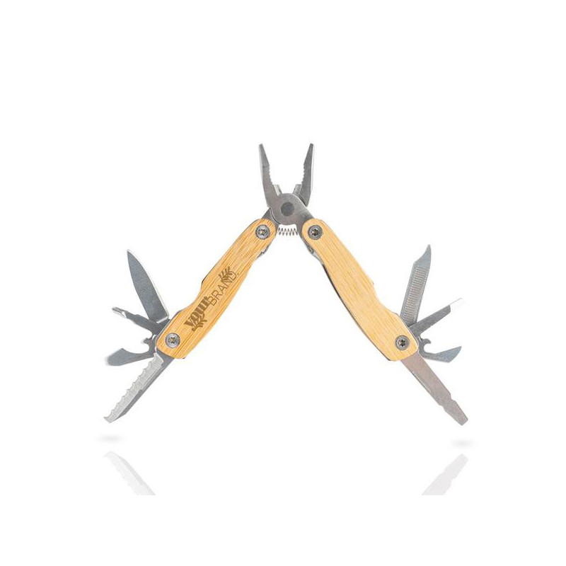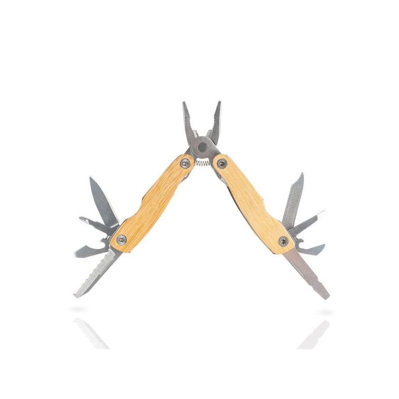 Alicate Multifunções Dobrável em Bambu e Aço Inoxidável.