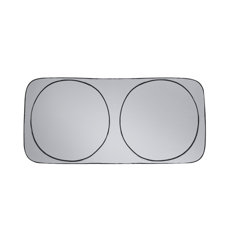 Para-sol dobrável de design prático e leve, fabricado em poliéster, ideal para carros e furgões com medidas de 150 x 70 cm. Sua face exterior apresenta cor sólida, enquanto o interior é prata brilhante, proporcionando proteção eficaz contra o sol e o calor. Inclui elástico de fechamento para facilitar seu armazenamento. Inclui capa individual combinando.