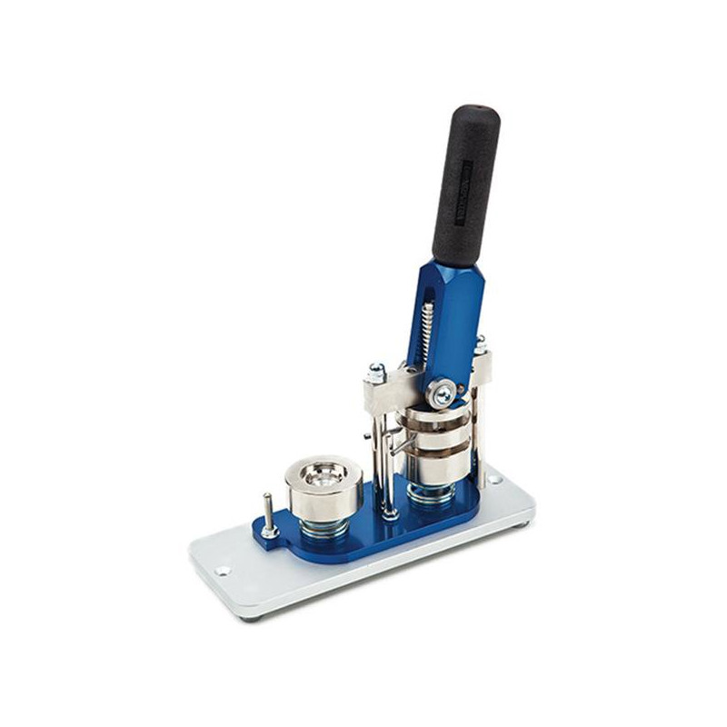 Faça facilmente os seus próprios crachás personalizados de 25 mm com a máquina de fazer crachás redondos B-500 com moldes fixos. Permite-lhe fazer aproximadamente 400 botões por hora. Faça os seus crachás no seu escritório ou em casa. Para além dos crachás de agulha, também pode fazer ímanes para frigorífico, crachás de fecho magnético duplo e espelhos para malas de mão.