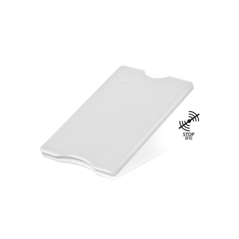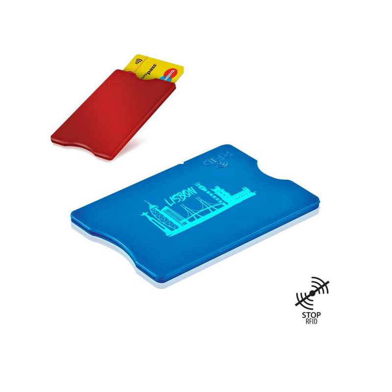 Porta-cartões em plástico, proteção contra RFID. Com os perigos da nova tecnologia wireless nos terminais multibanco, todo o cuidado é pouco. Proteja os seu cartões com um destes porta-cartões, que graças à sua tecnologia protetora RFID, não permitem que o terminal aceda automaticamente ao seu cartão. Boa área de personalização.