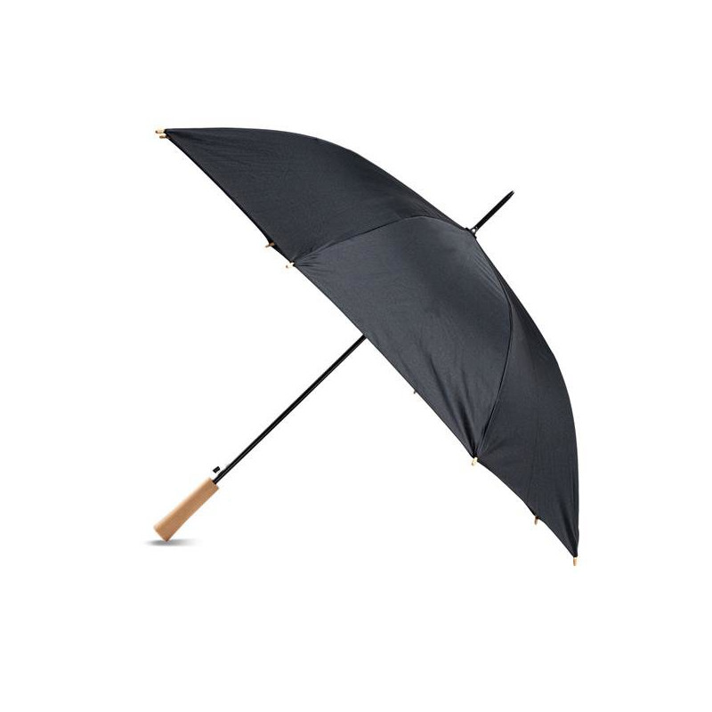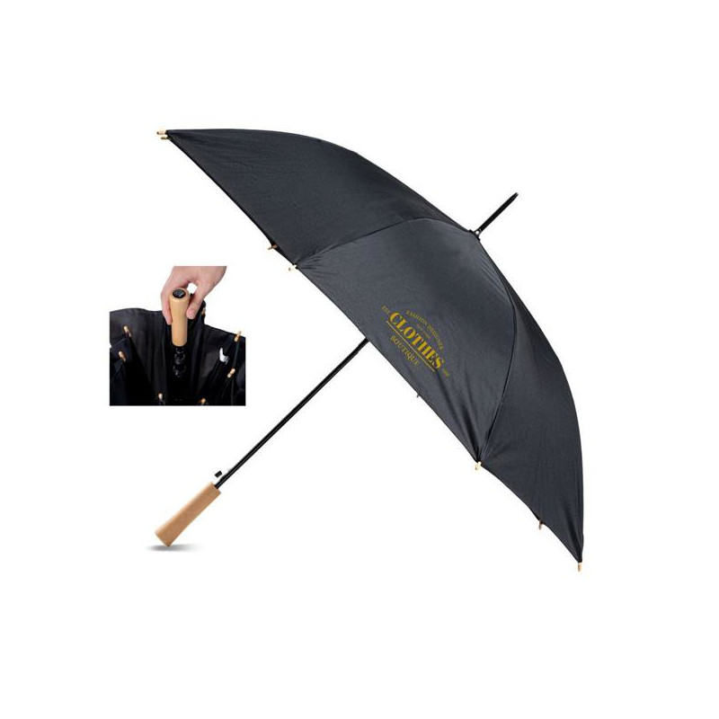 Guarda-Chuva com pega em madeira. este guarda-chuva de abertura automática com cabo em madeira, 8 painéis e 106 cm de diâmetro, fabricado com tecido 190T RPET Pongee, é uma escolha sustentável que contribui para a preservação do meio ambiente. O material reciclado e ecológico, juntamente com a etiqueta RPET, certifica o compromisso com a sustentabilidade e a responsabilidade ambiental.Este guarda-chuva não é apenas uma ferramenta útil contra o mau tempo, mas também um excelente item promocional. A personalização do cabo com resina epóxica permite que a sua marca seja destacada de forma elegante e duradoura.