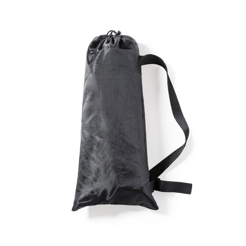 Mesa dobrável com resistente corpo de metal tubular e superfície em resistente poliéster 600D. Com costuras reforçadas e reforços antideslizantes nos pés. De fácil dobragem e tamanho compacto, apresentada em bolsa individual.