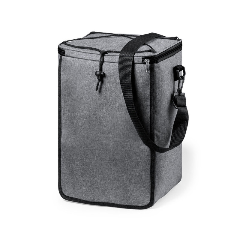 Conjunto de churrasco com 3 acessórios. Inclui: Bolsa térmica de transporte feito em resistente poliéster RPET 300D, elaborado de plástico reciclado, para asim incentivar a reutilização de resíduos plásticos e ajudar a sustentabilidade do planeta. Com alça de ombro ajustável com fecho de mosquetão e interior isotérmico em PEVA para preservar a temperatura dos alimentos. Distintivo RPET na etiqueta exterior.Espátula, pinça e trinchador metálicos, com pegas pretas.