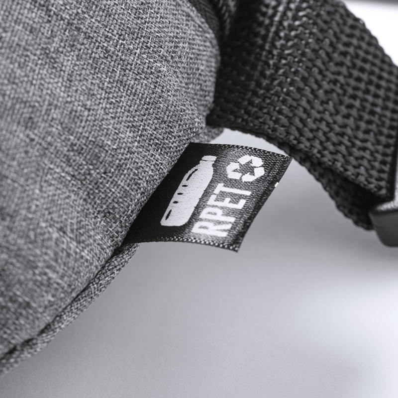 Bolsa de cintura de linha nature fabricada em resistente 600D RPET efeito melange. Elaborada a partir de plástico reciclado para incentivar a reutilização dos resíduos plásticos e contribuir para a sustentabilidade do planeta. Compartimento principal com fecho de correr e alça ajustável com fecho de fivela. Desenhada para atividades desportivas e de lazer, com distintivo RPET na etiqueta exterior.