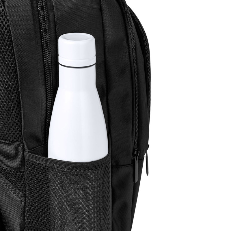 Mochila de qualidade premium fabricada em RNYLON 420D. Compartimento principal com fecho de correr a condizer e duplo puxador. Inclui 3 bolsos exteriores com fecho de correr e 2 bolsos laterais de rede. Acolchoada na pega, parte traseira e alças para ombros, que além disso são ajustáveis. Interior com compartimento acolchoado para computador portátil de até 15 polegadas e acessório nas costas para ajuste em trolley. Disponível numa variada gama de cores, com distintivo reciclado na etiqueta exterior.O material RNYLON é elaborado a partir de plástico reciclado, para assim fomentar a reutilização de resíduos plásticos e ajudar na sustentabilidade do planeta.