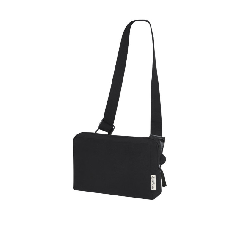 Bumbag retangular em algodão reciclado. Com bolso central com fechamento em zíper, puxador duplo e cinta ajustável com fecho de fivela combinando. Além disso, inclui bolso na parte de trás. Com distintivo de algodão reciclado.