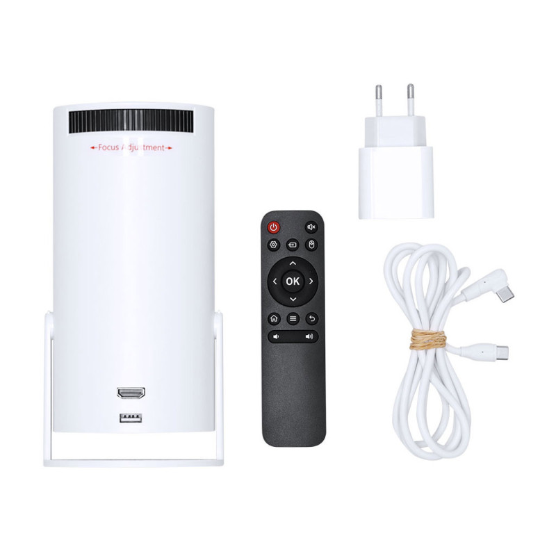 Projetor de design com conectividade Bluetooth e WiFi que proporcione uma experiência audiovisual fantástica. Feito de ABS resistente com acabamento mate e detalhes em silicone antiderrapante, incorpora um regulador de foco manual e um ângulo de rotação de 180º para uma visualização ideal. Suporta até 1080p, 2K e 4K via entrada HDMI, garantindo imagens claras e definidas. A sua potente coluna incorporada de 3W oferece som imersivo, ideal para reproduzir vídeo, áudio e fotografias. Quanto às ligações, tem: HDMI (fêmea), USB A, USB Tipo C e saída de áudio jack de 3,5 mm.