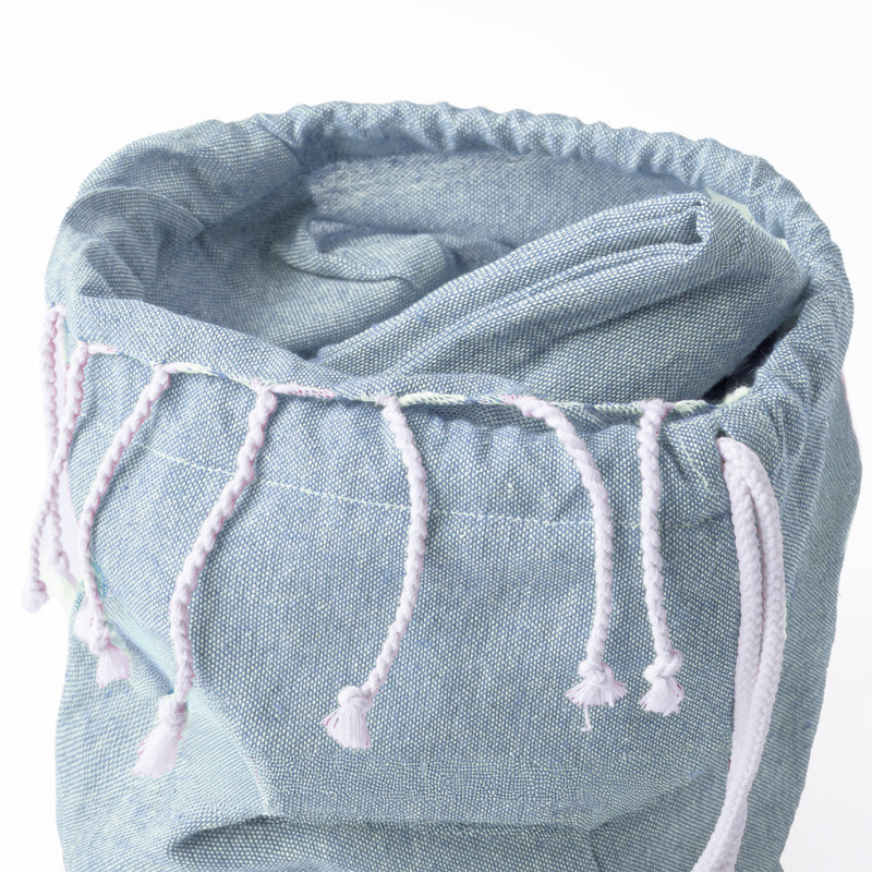 Mochila pareo de 180 × 90 cm em algodão reciclado suave de 170 g/m², com design liso a condizer com a mochila. O pareo apresenta uma dobragem especial que permite guardá-lo facilmente numa mochila de cordões, garantindo um transporte cómodo. Com logótipo Algodão Reciclado na etiqueta exterior.
