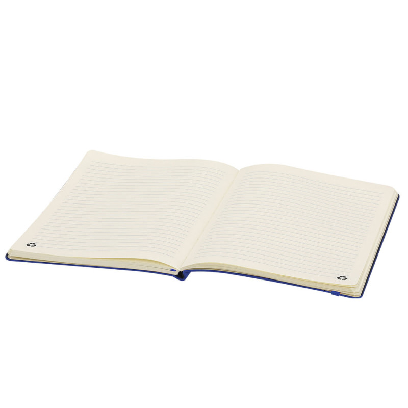 Bloco de notas com capas flexíveis e feito de PU reciclado macio. Com marcador de página e fita elástica de fecho a condizer. Inclui 80 folhas de cor creme com arranjo às riscas. Com o emblema de PU reciclado. O PU reciclado destaca-se pela sua resistência e elasticidade. Este material reciclado e reciclável é uma opção sustentável que resgata as fibras descartadas nos processos de fabrico, minimizando assim o desperdício de materiais e contribuindo para reduzir o impacto ambiental, mantendo as suas propriedades originais.