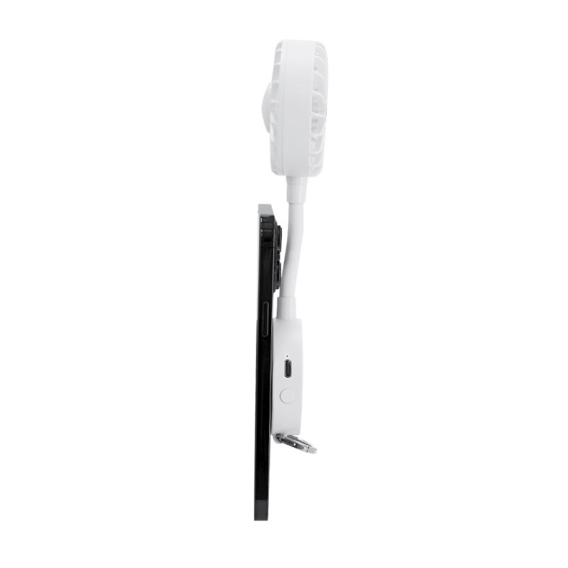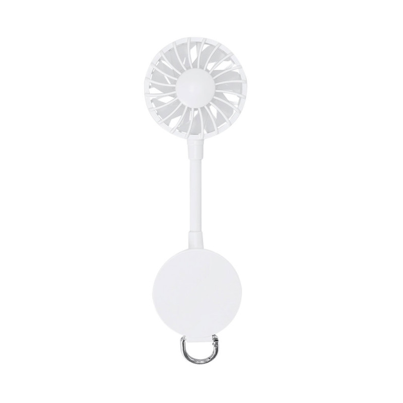 Ventilador multiposição com rotação de 360°, feito de ABS de cor sólida e equipado com íman magnético para fixação móvel. Inclui suporte ajustável. Na extremidade inferior tem um mosquetão e um anel metálico. Tem 3 velocidades ajustáveis por botão e incorpora um cabo de carregamento USB A para USB C da mesma cor, juntamente com uma bateria de 300 mAh. Design compacto, funcional e portátil, ideal para uso pessoal no exterior ou no interior. Componentes resistentes e conjunto magnético para fácil dobragem e transporte.