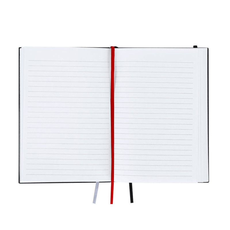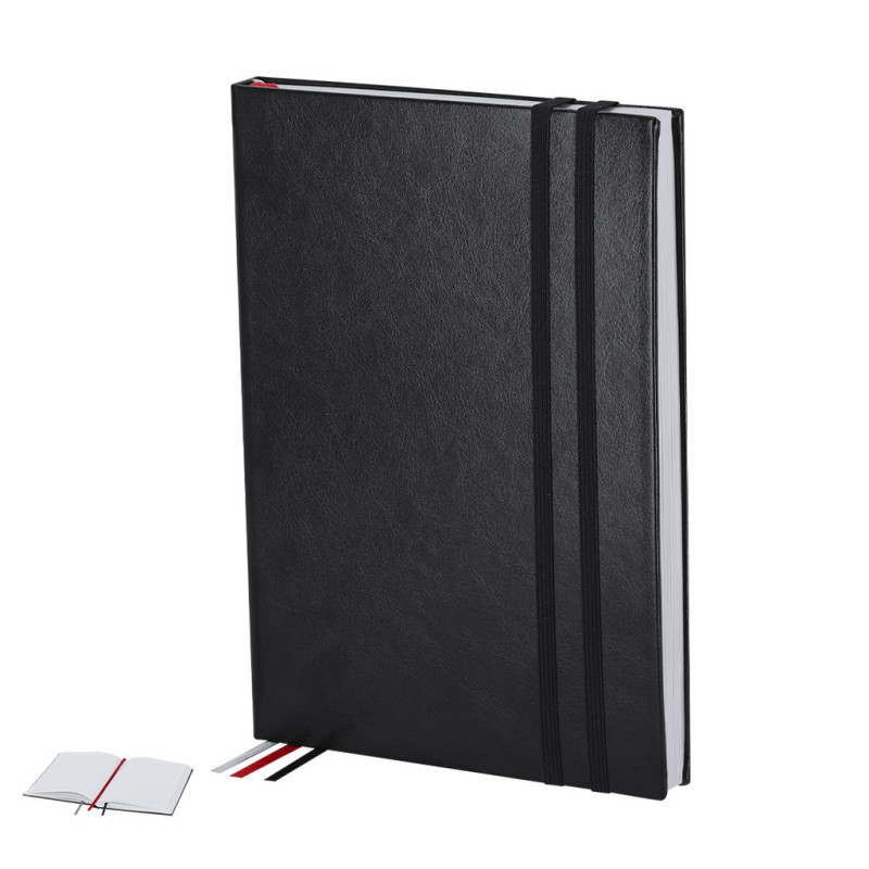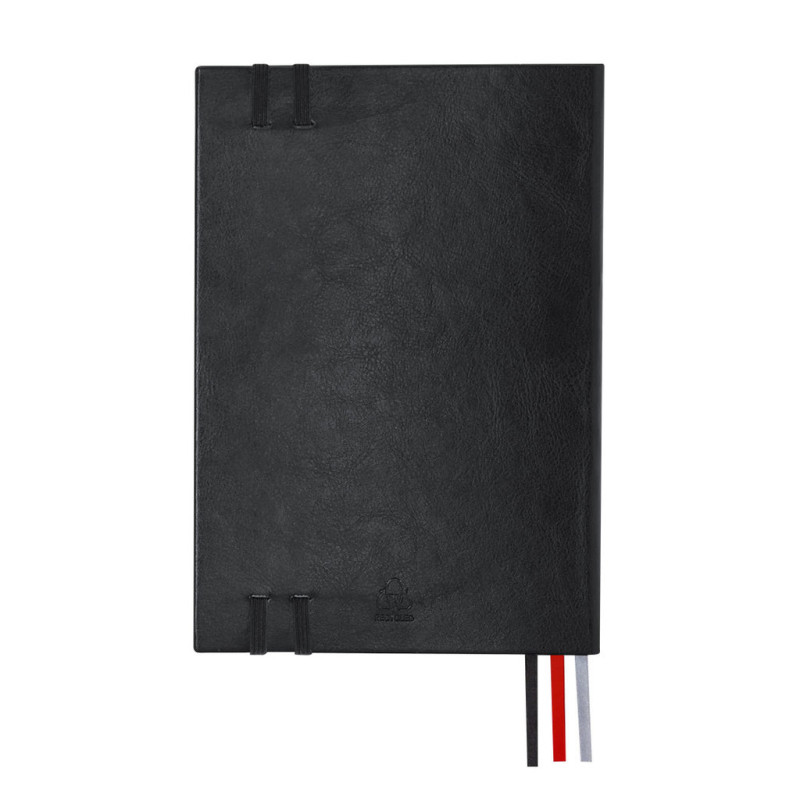 Bloco de notas tamanho A5 com capas rígidas e macias, feito de PU e RPET reciclados. Marque na fita em três cores diferentes (preto, vermelho e cinzento) para facilitar o planeamento diário e para uma fita elástica dupla a condizer. Inclui 128 folhas brancas com disposição às riscas e um bolso de papel prático para notas soltas. Ideal para manter um diário e planear ao longo do ano. Com o emblema de PU reciclado. O PU reciclado destaca-se pela sua resistência e elasticidade. Este material reciclado e reciclável é uma opção sustentável que resgata as fibras descartadas nos processos de fabrico, minimizando assim o desperdício de materiais e contribuindo para reduzir o impacto ambiental, mantendo as suas propriedades originais.