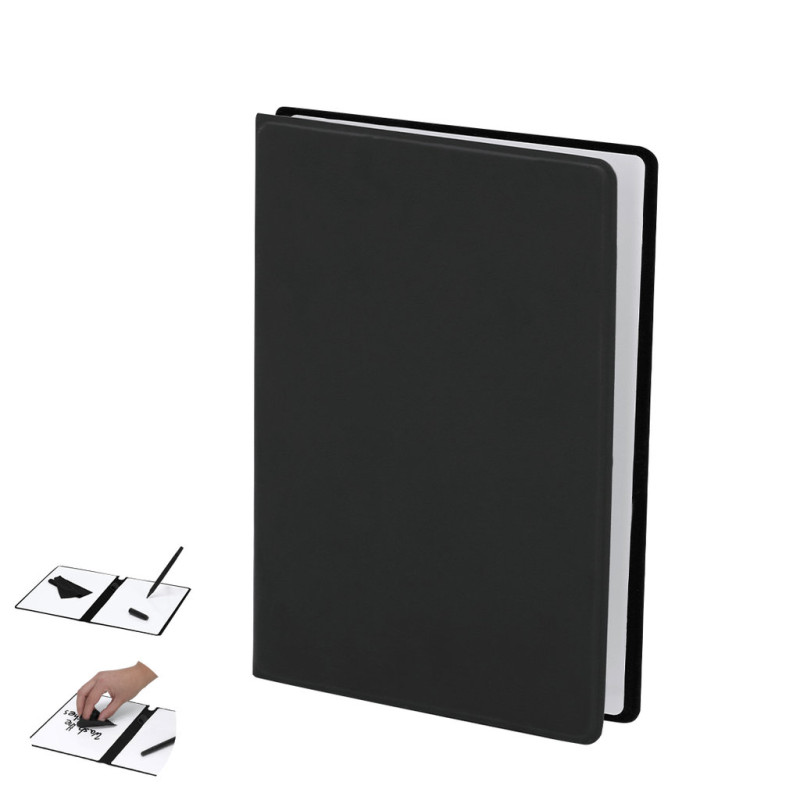 Bloco de notas feito de PU macia e elegante. Inclui um quadro branco de cada lado, com marcador e pano de limpeza. Ideal para tirar notas ou partilhar ideias visualmente.