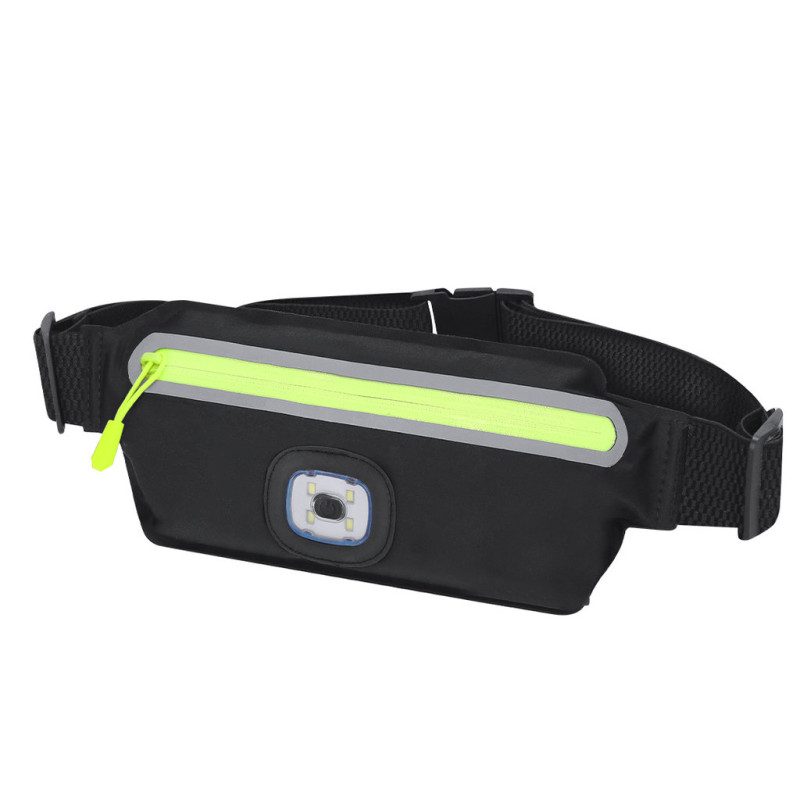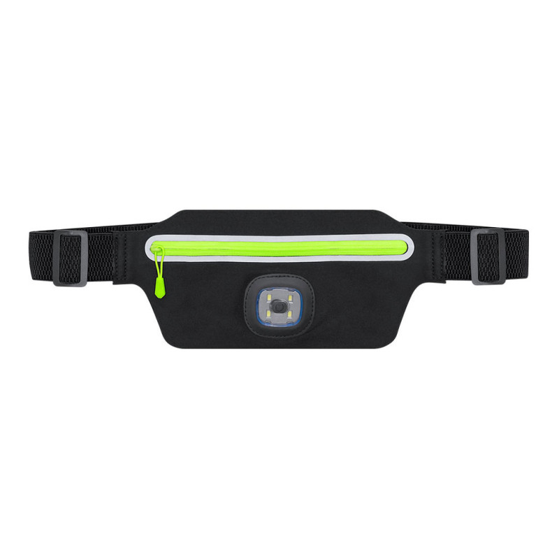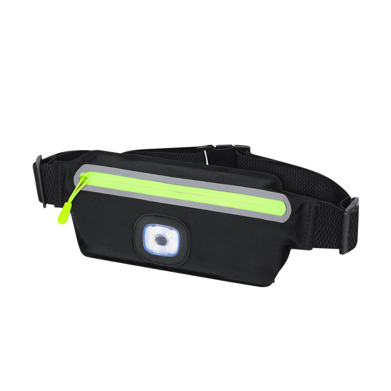 Pochete feita de poliéster resistente. Compartimento principal com fecho de fecho refletor. Na frente inclui uma lanterna com 3 intensidades de luz. Bateria de 300mAh, com carregamento via cabo USB. Com fecho de fivela e correia ajustável, especialmente concebida para atividades desportivas e de lazer.