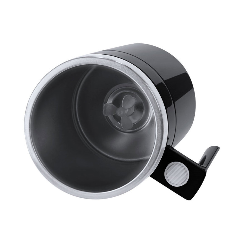 Copo de mistura feito de aço inoxidável resistente com capacidade de 400ml. Inclui tampa com bico deslizante. A base interior inclui um agitador elétrico alimentado por 2 pilhas AAA (não incluídas). Com botão ligar/desligar na maçaneta.