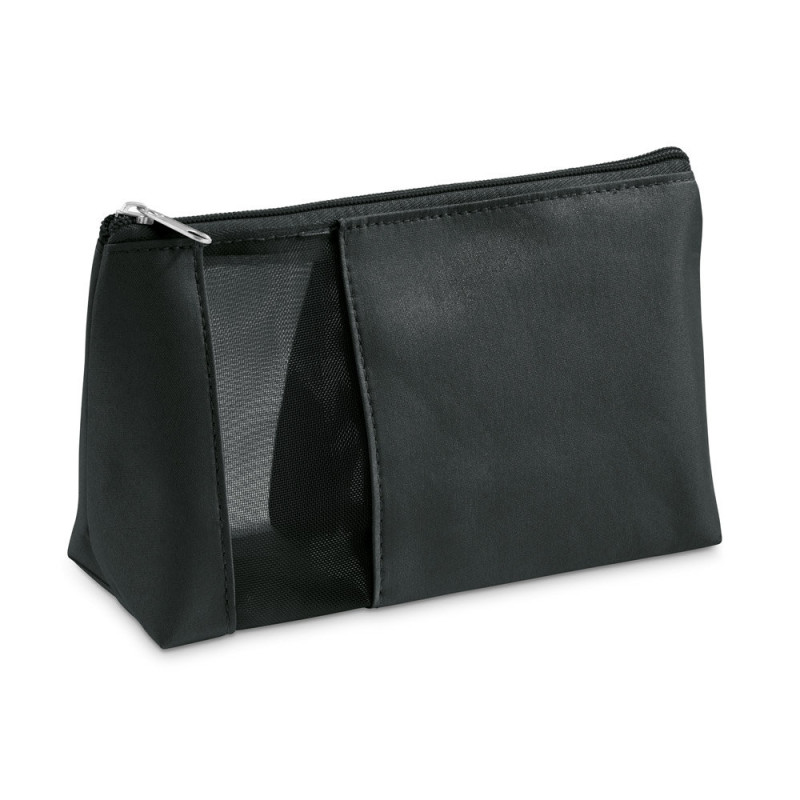 Necessaire em microfibra e rede, com fecho de correr. 210 x 130 x 85 mm