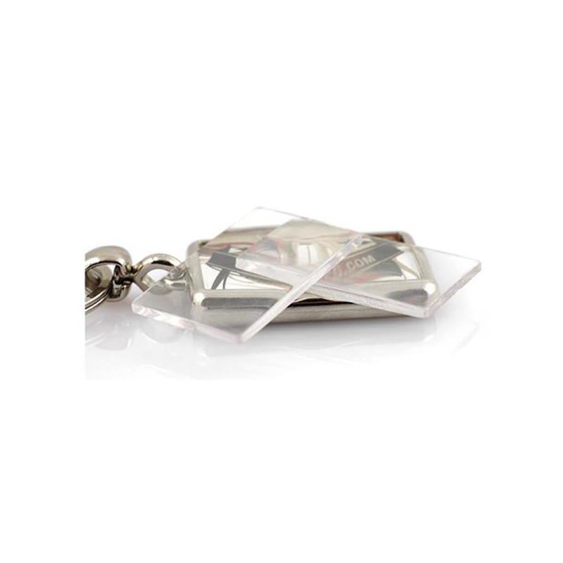 Faça os seus próprios porta-chaves publicitários personalizados para divulgar uma marca, um produto ou uma empresa de forma económica.Este porta-chaves retangular é um brinde publicitário muito eficaz para atingir um grande número de clientes.Personalizado em 2 faces com inserção de papel (25x40mm), e tampa em acrílico.