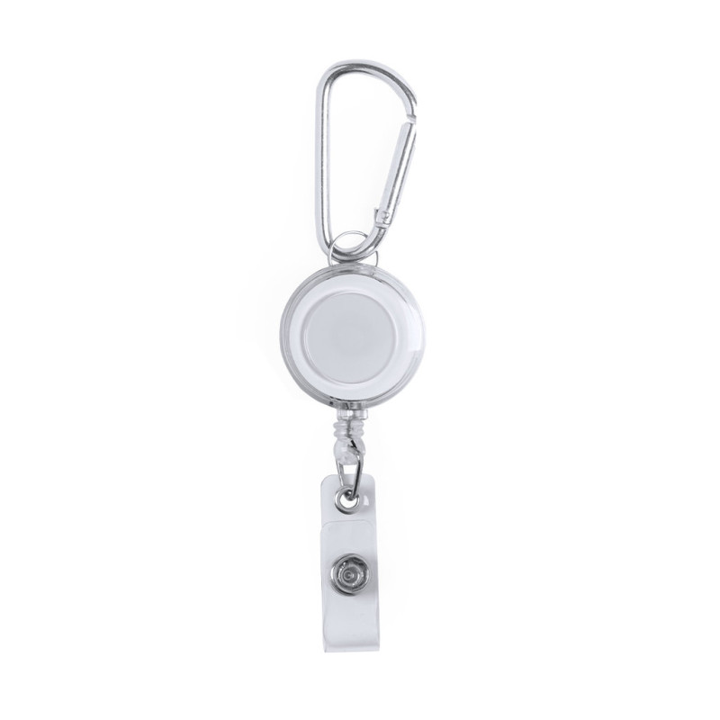 Porta-objetos extensível de design sóbrio, com fita de fixação de fecho de botão e mecanismo extensível até 65 cm. Inclui mosquetão metálico de encaixe. Especialmente desenhado para guardar objetos de uso quotidiano e obter fácil acesso aos mesmos (porta-chaves anti-contacto, ponteiros de segurança...). Ampla superfície de impressão na peça central.