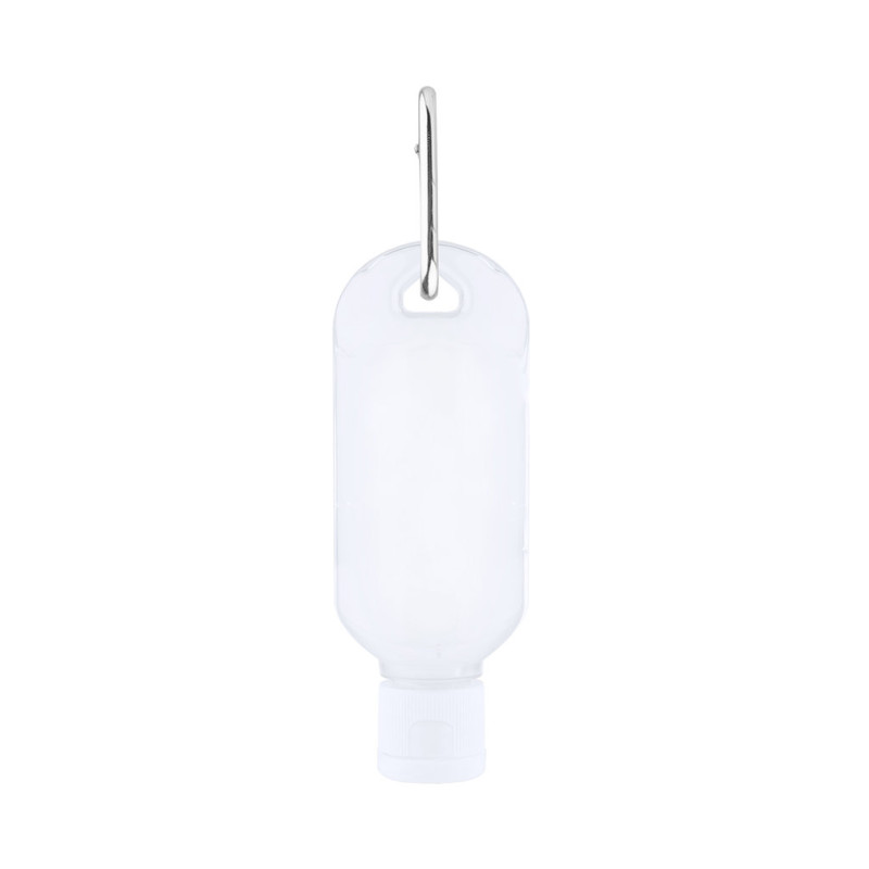 Gel hidro-alcoólico para higiene e limpeza da pele em frasco recarregável de 30 ml. Corpo de cor transparente, com dispensador, tampa de segurança e mosquetão para transporte / fixação. Solução com 65% de conteúdo de álcool.Artigo com certificação GMP (Good Manufaturing Practices / Normas de Correta Fabricação) que garante o cumprimento de rigorosas medidas de controlo para a obtenção de um produto seguro e de qualidade.