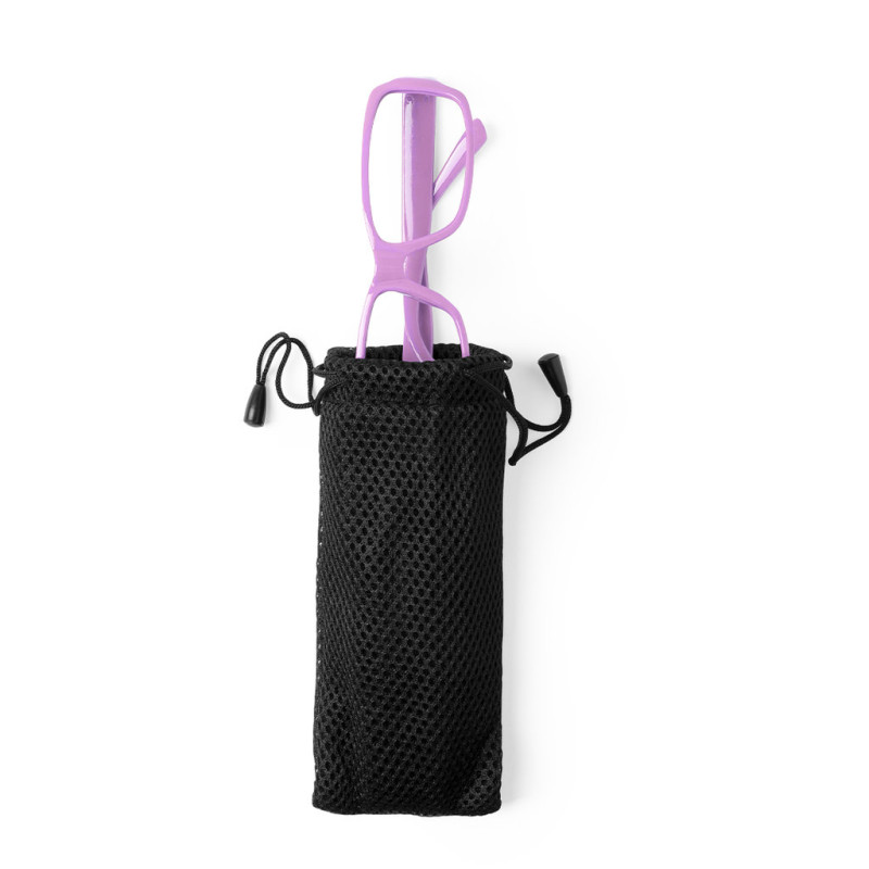 Estrutura de óculos originais sem lentes com quadros em uma ampla gama de tons brilhantes. Apresentado em uma tampa de poliéster acolchoada com cadarços de fechamento automático.
