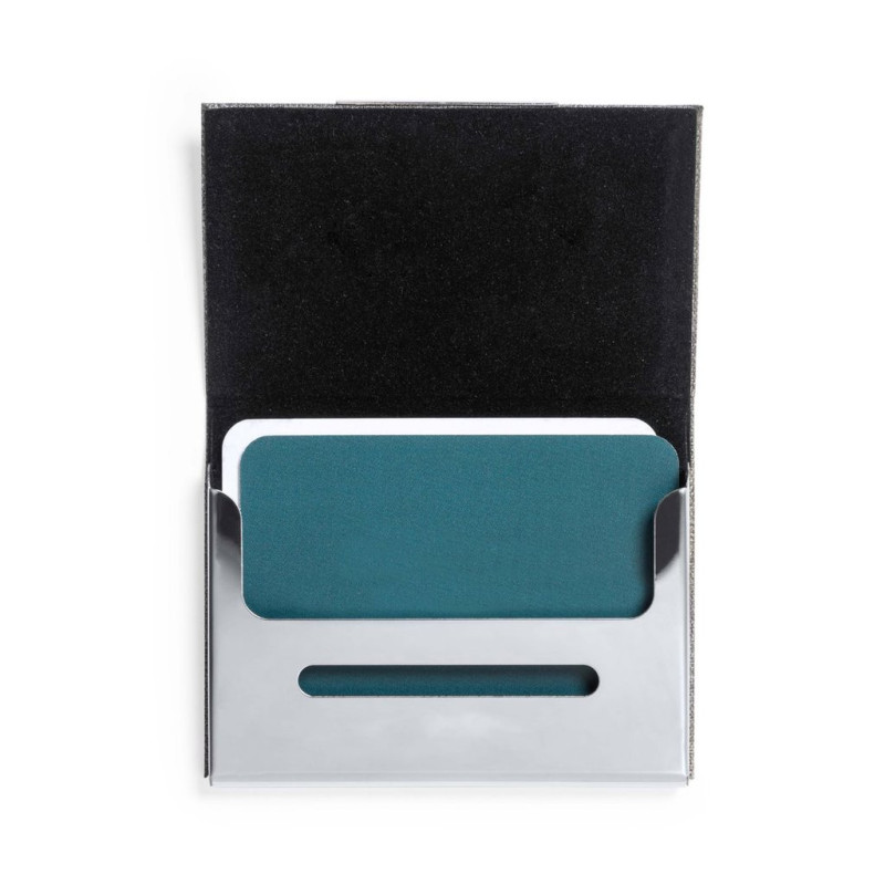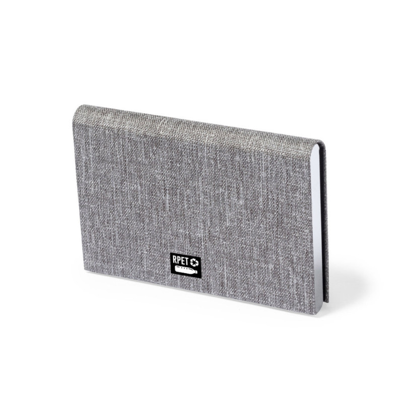 Elegante porta-cartões fabricado em resistente poliéster RPET 300D. De capas duras e fecho magnético. Com detalhe metálico cromado na parte frontal e compartimento interior para guardar os cartões. Com distintivo RPET na parte traseira e disponível numa variada gama de cores. O material RPET é elaborado a partir de plástico reciclado, para assim fomentar a reutilização de resíduos plásticos e ajudar a la sustentabilidade do planeta.