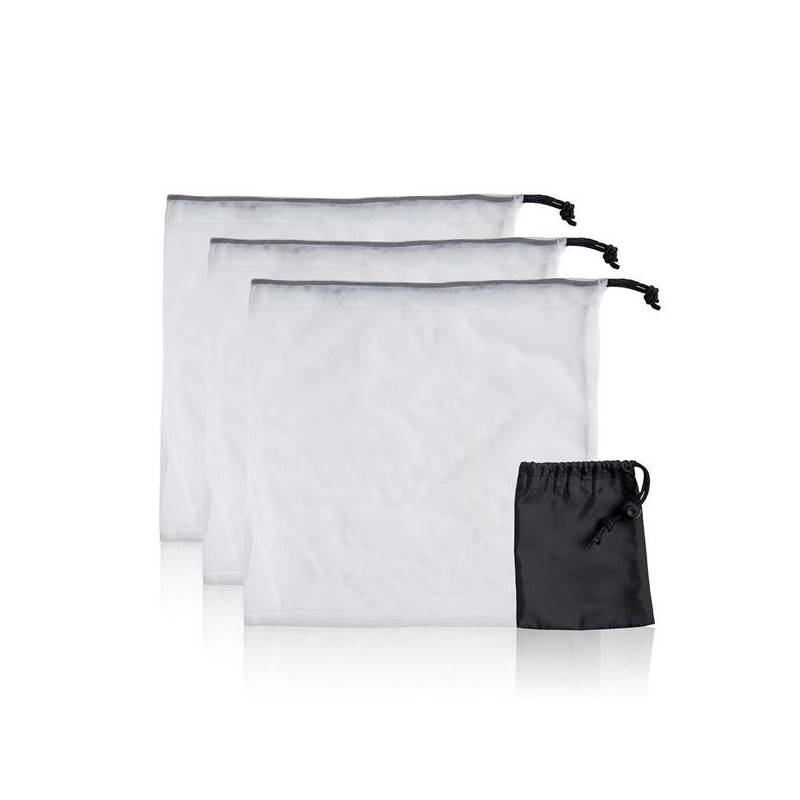 Conjunto de bolsa, Veguit com três sacos em malha (25,5 X 30,5cm) é o acessório ideal para as suas compras. Deixe de lado os sacos de plástico para os seus alimentos e pegue nesta ótima opção para ser amigo do ambiente. A bolsa em RPET (12 X 15cm), também amiga do nosso planeta, tem uma boa área de gravação, torna fácil o transporte dos sacos de malha e fecha com um atilho. Lavável a 30ºc, não usar detergente à base de cloro, não pode ir à maquina de secar. Passar a ferro num máximo de temperatura de 110ºc. Não apto para limpeza a seco.