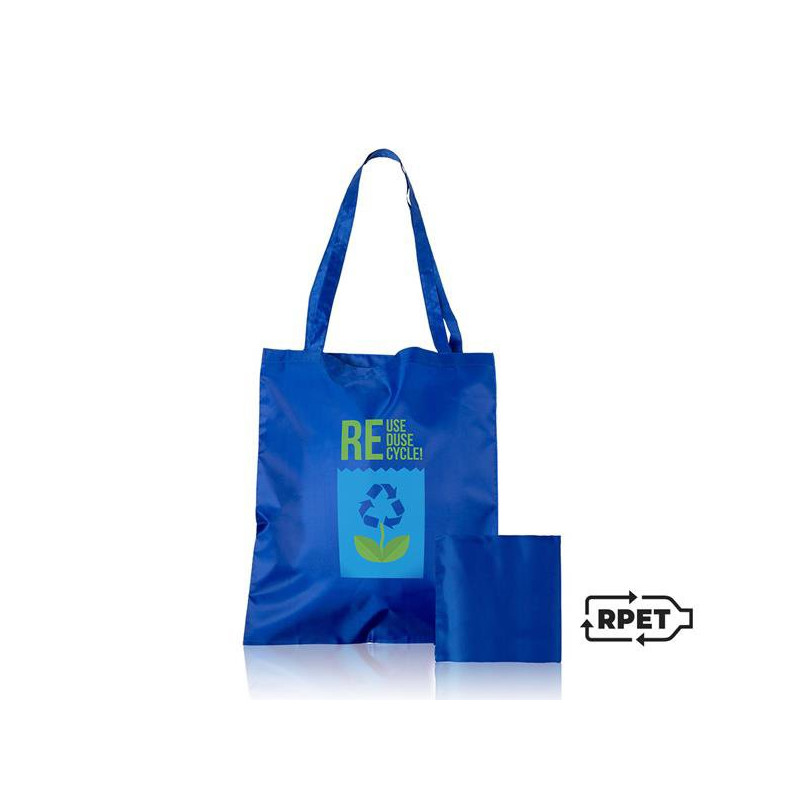 Saco dobrável, Refold em RPET. Pode levar este saco para qualquer lado e deixar de vez de utilizar os sacos plásticos de utilização única. Para facilitar o transporte, apresentamos-lhe um saco dobrável em PET reciclado. Escolha proteger o nosso planeta.
