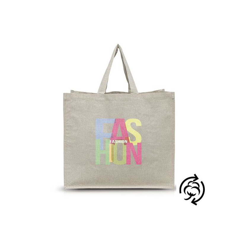 Saco algodão reciclado com laminação interior. Este saco de algodão reciclado é uma escolha eco-consciente para transportar os seus pertences de forma prática e sustentável. Fabricado com algodão reciclado de alta qualidade, este saco oferece durabilidade e resistência, ao mesmo tempo que contribui para a preservação do meio ambiente.Com dimensões de 43* 38* 20 cms este saco oferece um amplo espaço para as suas compras ou objetos pessoais, mantendo-os organizados e protegidos.A sua laminação interior proporciona uma camada adicional de proteção contra a humidade, garantindo que os seus pertences permaneçam secos mesmo em condições adversas.Além disso, o design moderno e versátil deste saco permite que seja utilizado em diversas ocasiões, desde idas ao mercado até passeios ao ar livre ou mesmo como uma opção prática para o dia-a-dia.Seja consciente e faça a diferença com este saco de algodão reciclado, uma escolha sustentável e elegante para acompanhar o seu estilo de vida.