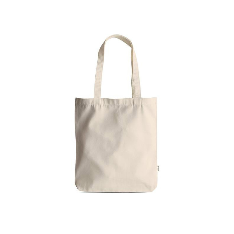 Saco de algodão reciclado 310g/m², composto por 70% algodão reciclado e 30% RPET (plástico reciclado), com dimensões de 38×42cm. Este saco de algodão é uma alternativa sustentável. A sua composição contribui para a redução de resíduos têxteis e plásticos, oferecendo uma alternativa resistente, prática e reutilizável para o dia a dia. Ideal para compras, trabalho ou lazer, este saco apoia um estilo de vida mais responsável e consciente com o ambiente.