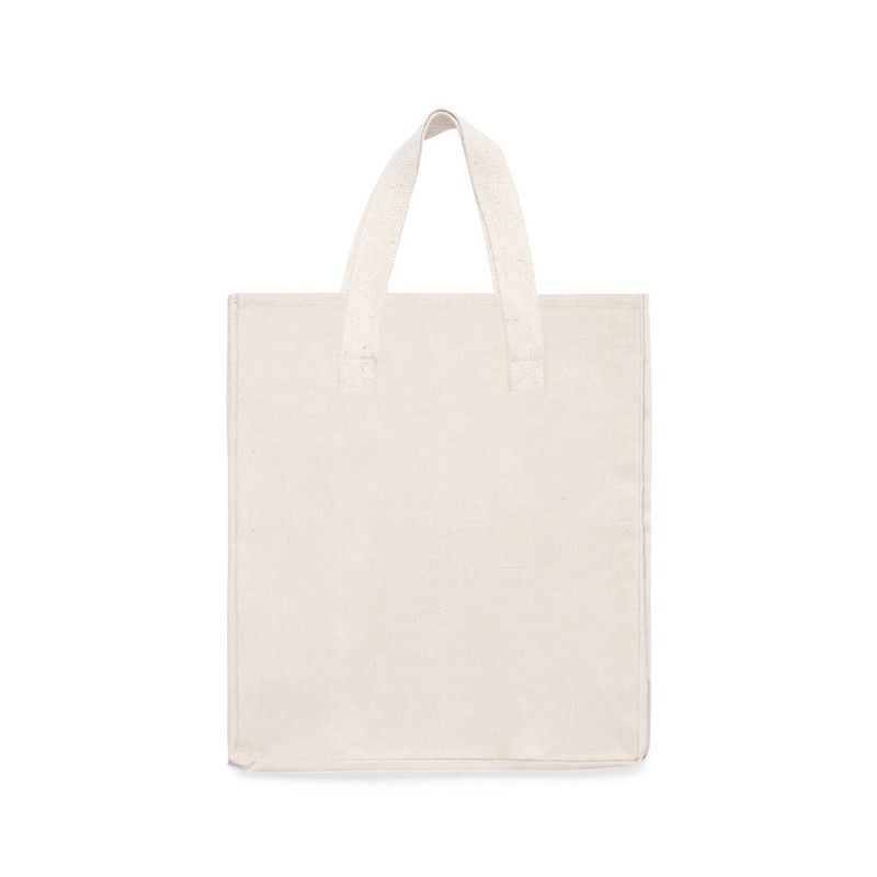 Saco XL de grande capacidade fabricado em algodão, de acabamento natural e em gramagem extra de 310g/m2. De acabamento cosido e com fole. Asas compridas extra largas e reforçadas (72 x 3,5 cm). Resistência até 10 kg de peso.