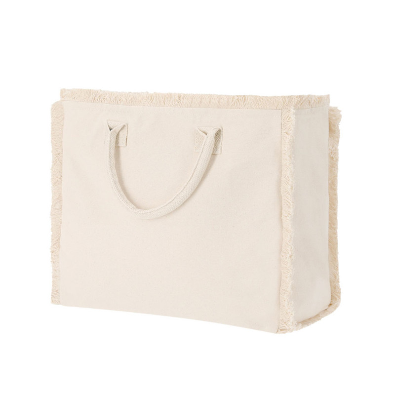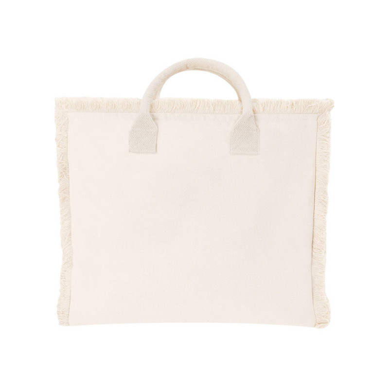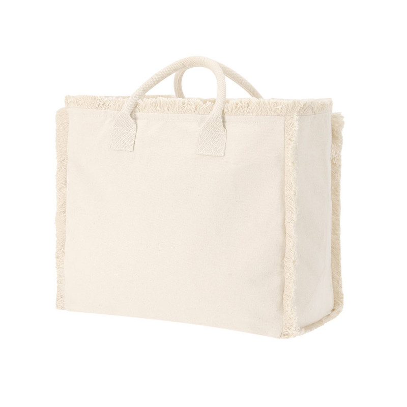 Bolsa com estilo de franjas confeccionada principalmente em algodão de 360 g/m². De design prático e moderno, incorpora alças curtas reforçadas. Inclui fechamento de zíper para maior segurança e bolso interno com zíper.
