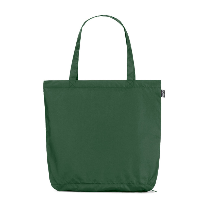 Guarda-chuva 2 em 1 com saco de compras em poliéster reciclado incluído. O guarda-chuva, dobrável de 21'' e em poliéster reciclado (100% rPET) pongee 190T, tem varetas em fibra de vidro, haste metálica e pega em ABS (35% reciclado). Guarda-chuva dobrável em 3 secções, com abertura automática e à prova de vento. Saco de compras em poliéster reciclado, onde pode ser guardado para transporte ou utilizado separadamente. Ø 970 x 290 mm | Saco: 420 x 390 mm