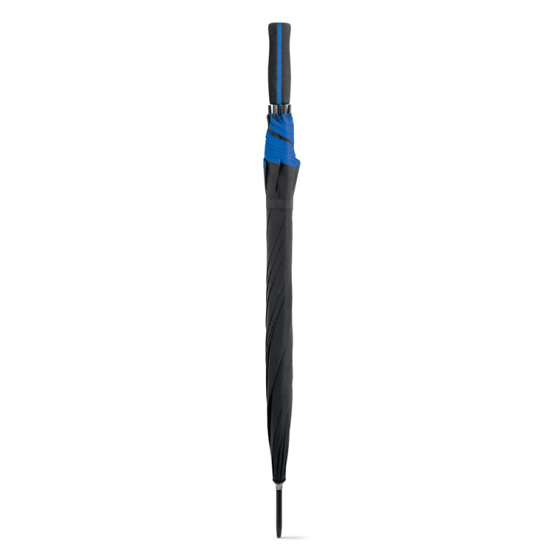 Guarda-chuva em poliéster 190T, com pega em EVA e mecanismo de abertura automática. Detalhe com linha colorida no chapéu e na pega. ø1040 x 825 mm