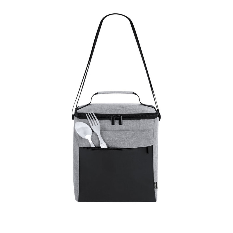 Cooler fabricado em resistente RPET 600D em combinação com PU. Inclui compartimento principal, com fechamento de zíper e puxador metálico duplo, com interior isotérmico em PEVA. Bolso frontal com fechamento de zíper. Inclui alça de ombro ajustável e alça de mão acolchoada na parte superior. Etiqueta exterior com distintivo RPET.O material RPET é elaborado a partir de plástico reciclado, para promover a reutilização de resíduos plásticos e ajudar a sustentabilidade do planeta.