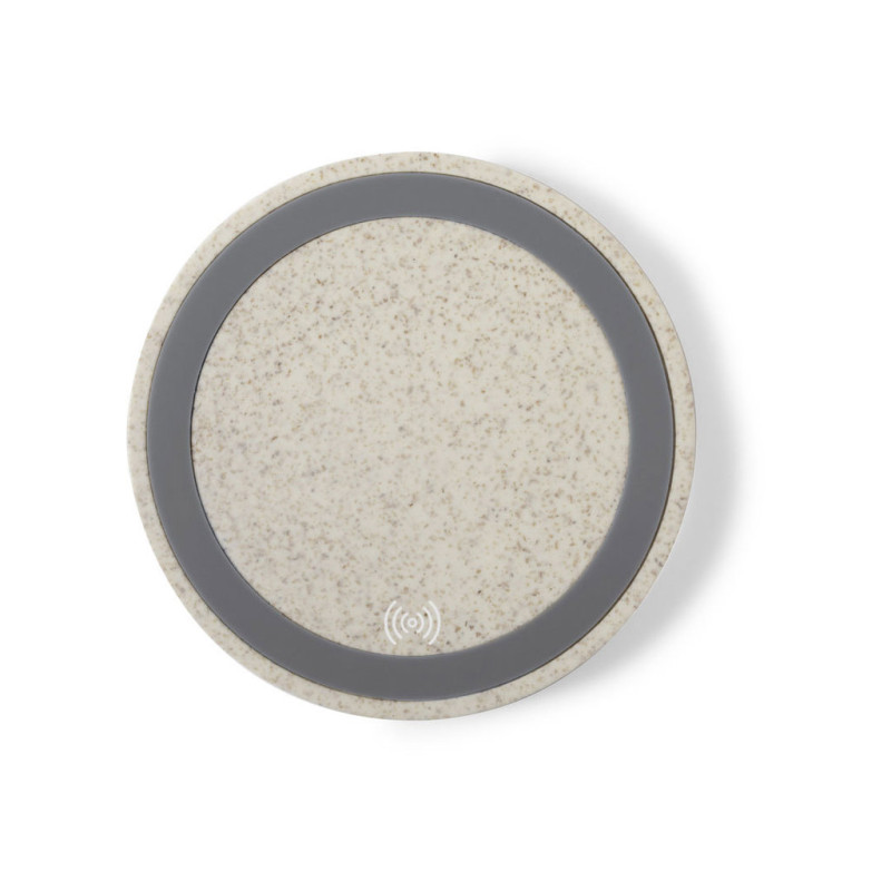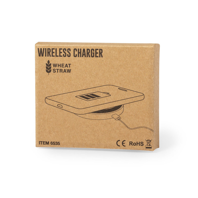 Carregador sem fio da linha da natureza. Palha de trigo de casca, para incentivar o uso de matérias -primas naturais e reduzir as emissões contaminantes. Com base não deslizante e indicador de LED para status de carregamento. Compatível com smartphones com tecnologia de carregamento de wireles e apresentada em uma caixa de design atraente e ecológica.