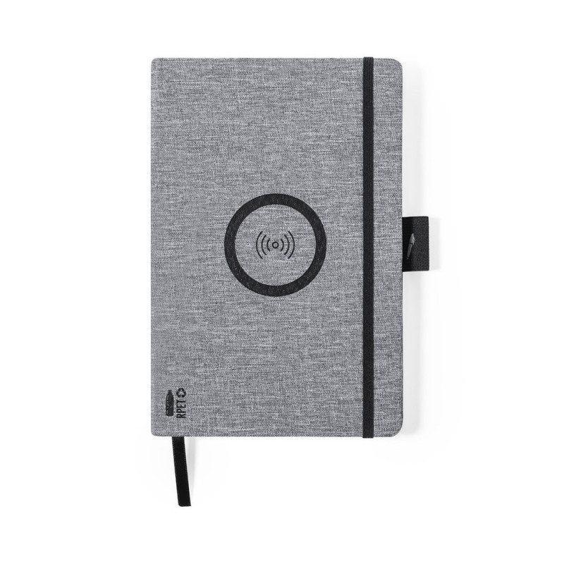 Bloco de notas carregador da linha nature em resistente poliéster 300D RPET de tamanho A5 e elaborado a partir de plástico reciclado, para assim fomentar a reutilização de resíduos plásticos e ajudar a sustentabilidade do planeta. Com carregador sem fios de 10W integrado na capa. Inclui 80 folhas pautadas. Compatível com smartphones com tecnologia de carga sem fios. Inclui cabo de carga Tipo C e manual de instruções disponível em Espanhol e Inglês.