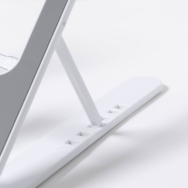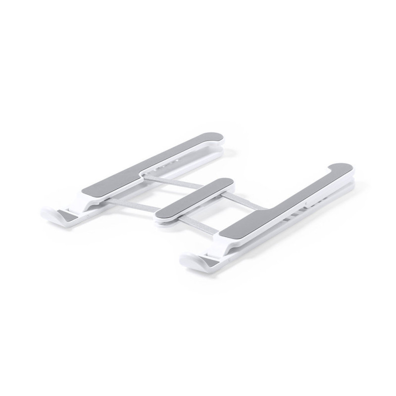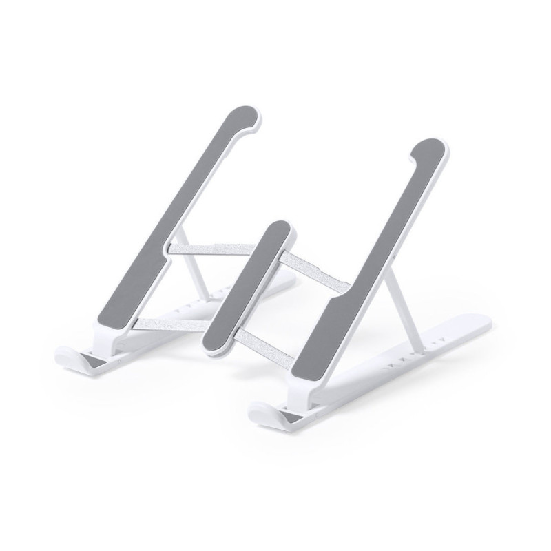 Suporte dobrável para portátil. Fabricado em resistente ABS com proteções antiderrapantes em TPR para um ajuste firme ao dispositivo. Altura regulável, com dobrado de tamanho compacto e apresentado numa bolsa de camurça com fecho de cordão e caixa de design individual.