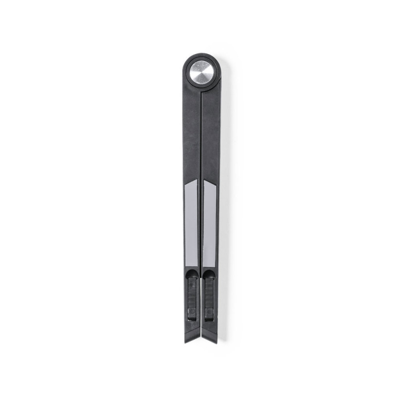 Original suporte dobrável para dispositivos móveis e portátil até 13", fabricado em resistente material ABS. Com duas posições de visualização e dobrado de pequeno tamanho para facilitar o transporte.