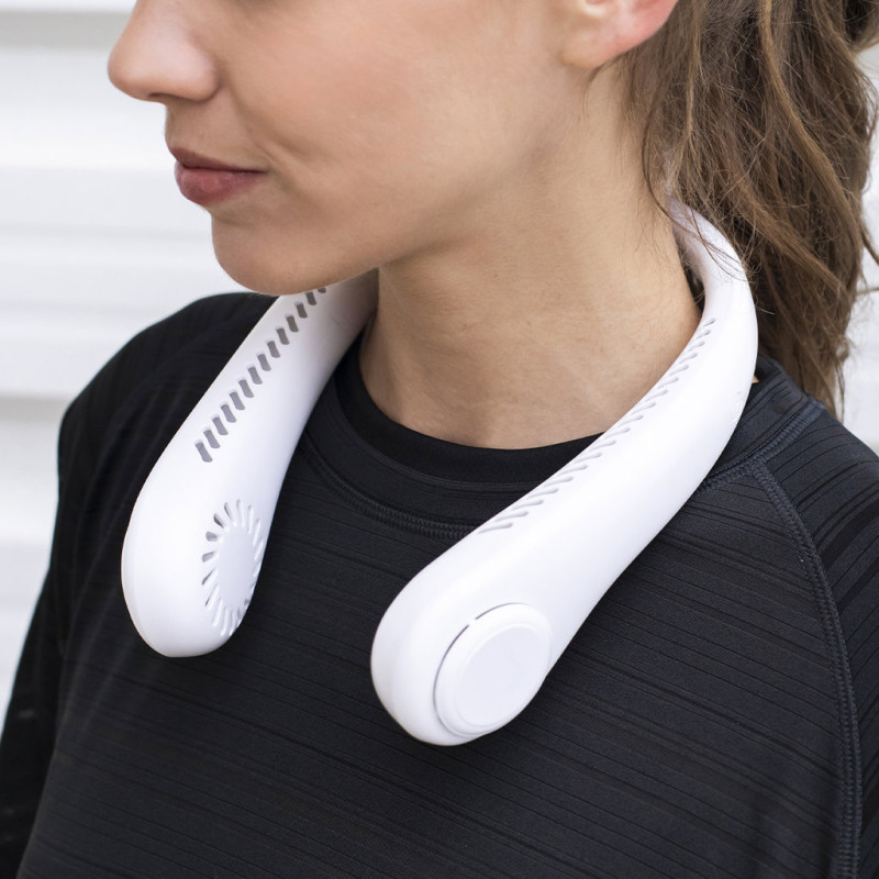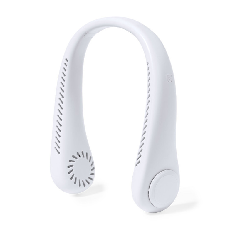 Prática ventoinha portátil fabricada em resistente ABS. Esta elegante ventoinha tem um design de colar para usar à volta do pescoço, proporcionando uma sensação refrescante. Oferece três posições de velocidade diferentes e é recarregável através da sua bateria de 800 mAh, cabo micro USB incluído. Apresentada numa caixa de design kraft.